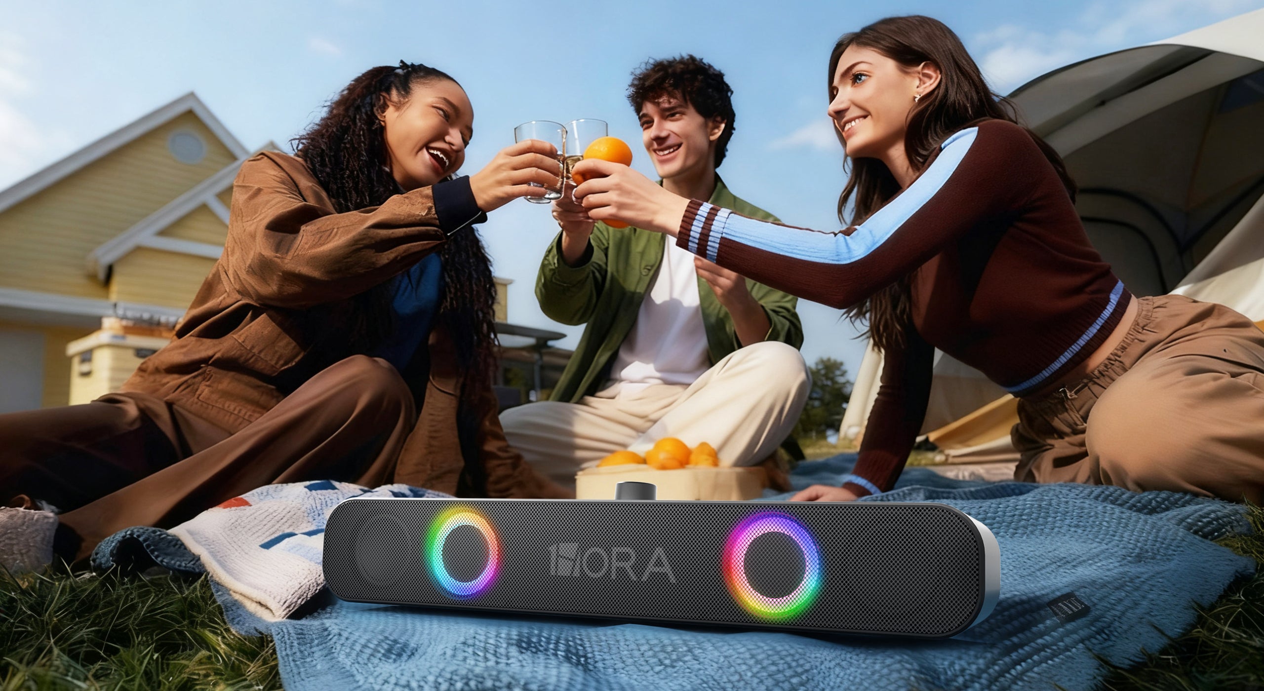 Experience immersive sound with deep, punchy bass—perfect for camping, picnics, and outdoor gatherings.