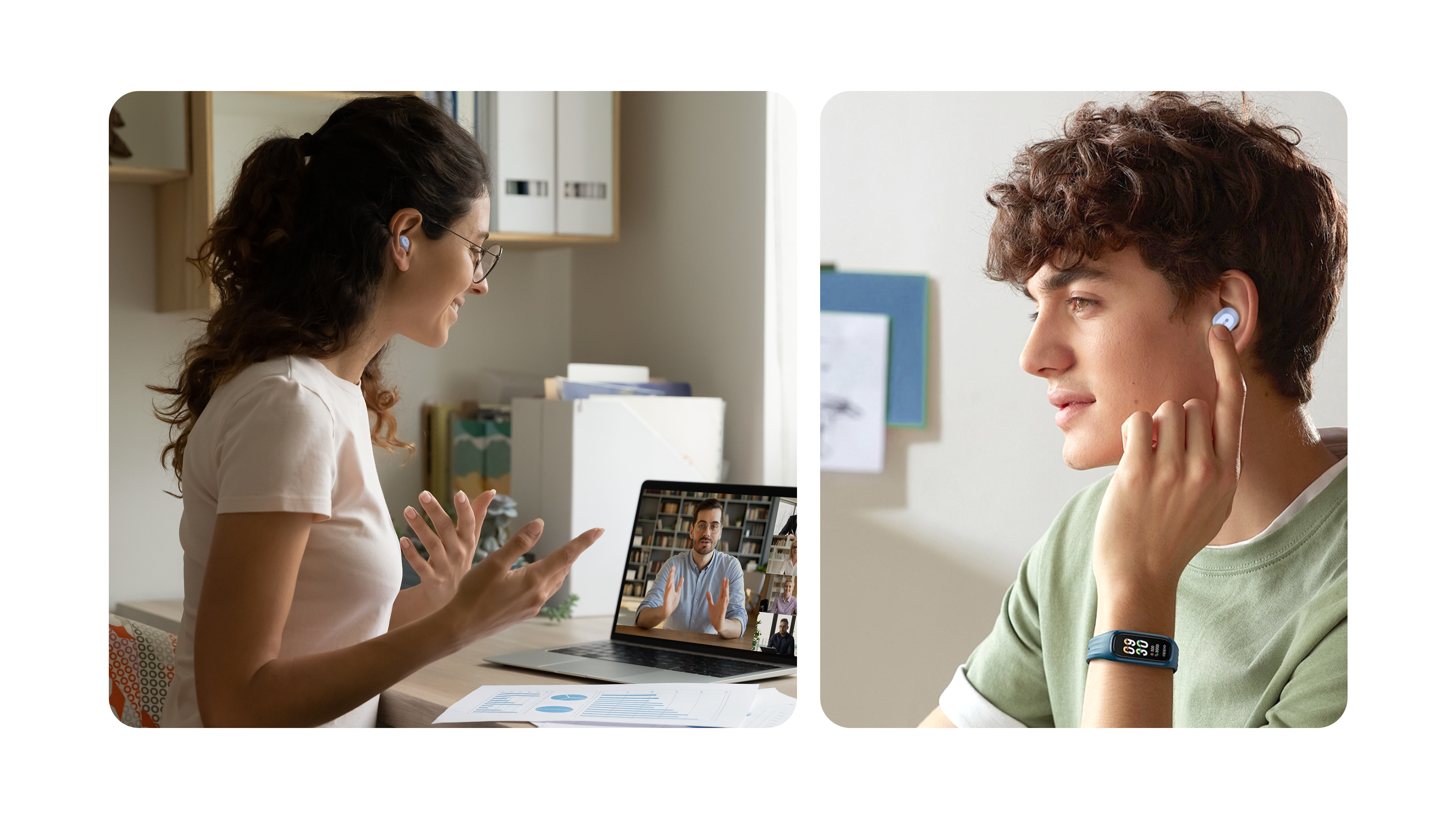 Los auriculares inalámbricos ofrecen 6 horas de reproducción (19 horas con el estuche de 300 mAh) mediante Bluetooth 5.3. Cuentan con carga USB-C, diseño intrauditivo e incluyen un cable USB-C para cargar directamente el teléfono.