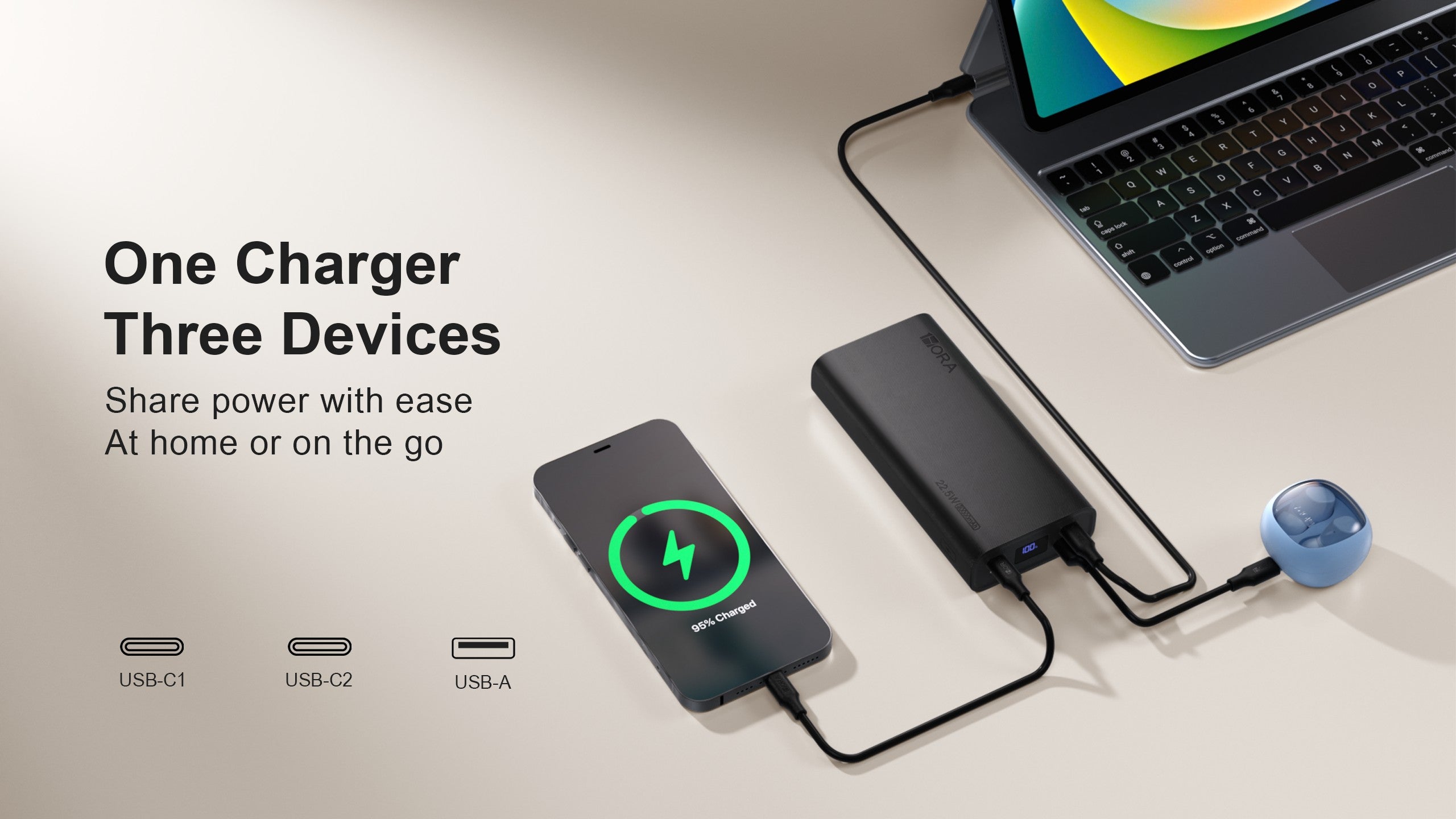 Power Up Fast – Charge 3 Devices Simultaneously with 20,000mAh Power