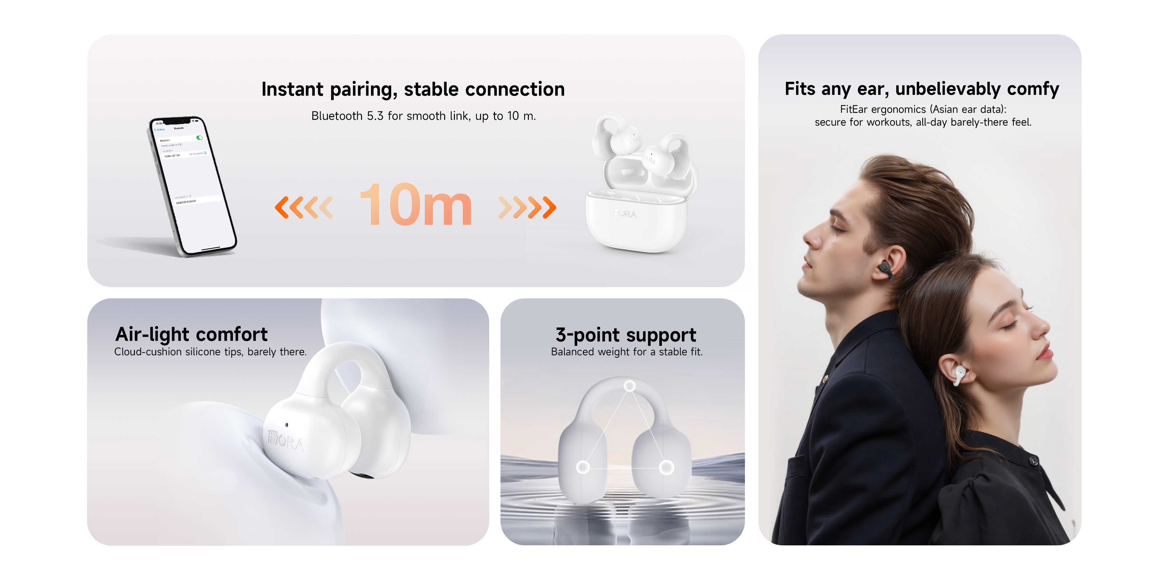 Auriculares inalámbricos con clip AUT210 – Auriculares deportivos Bluetooth con LED