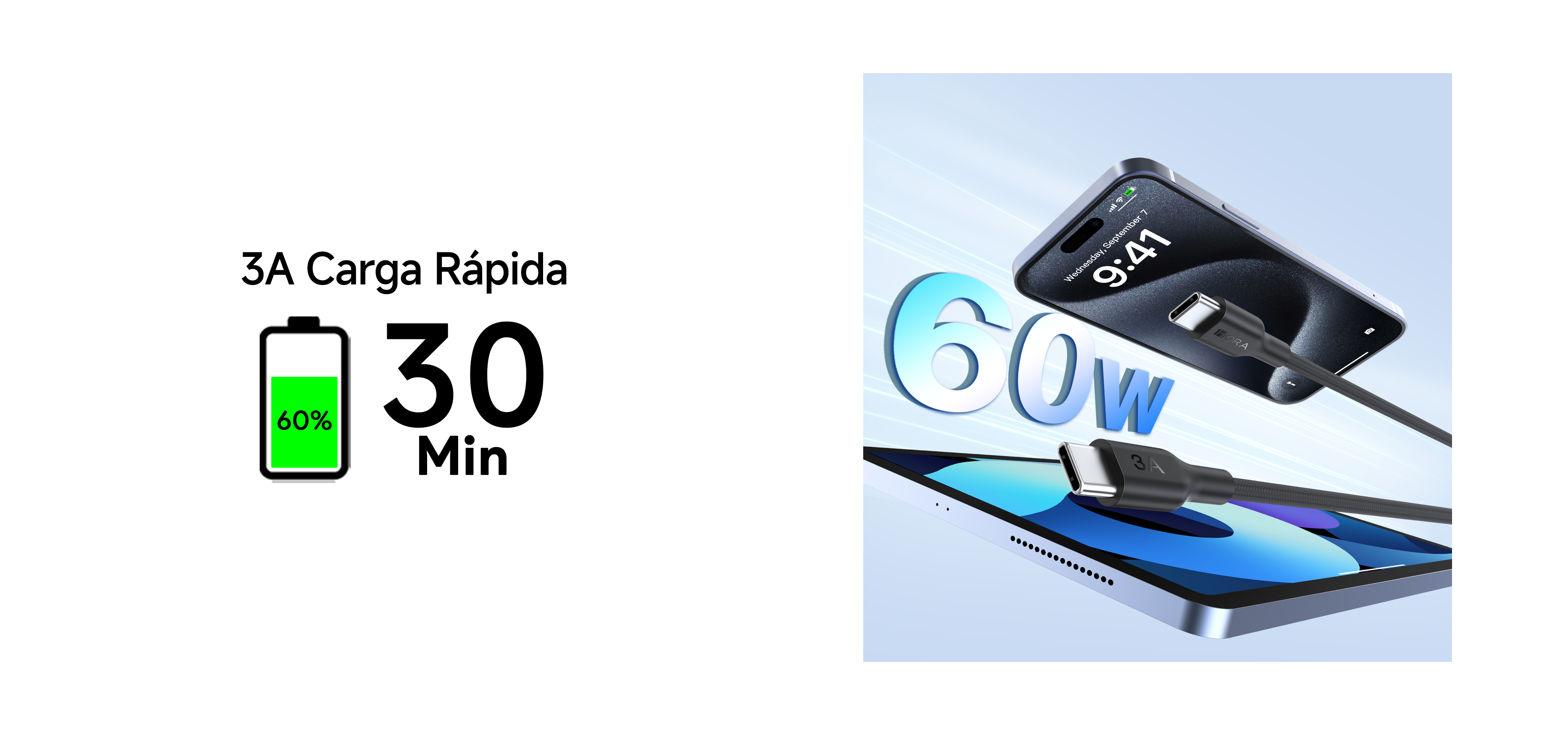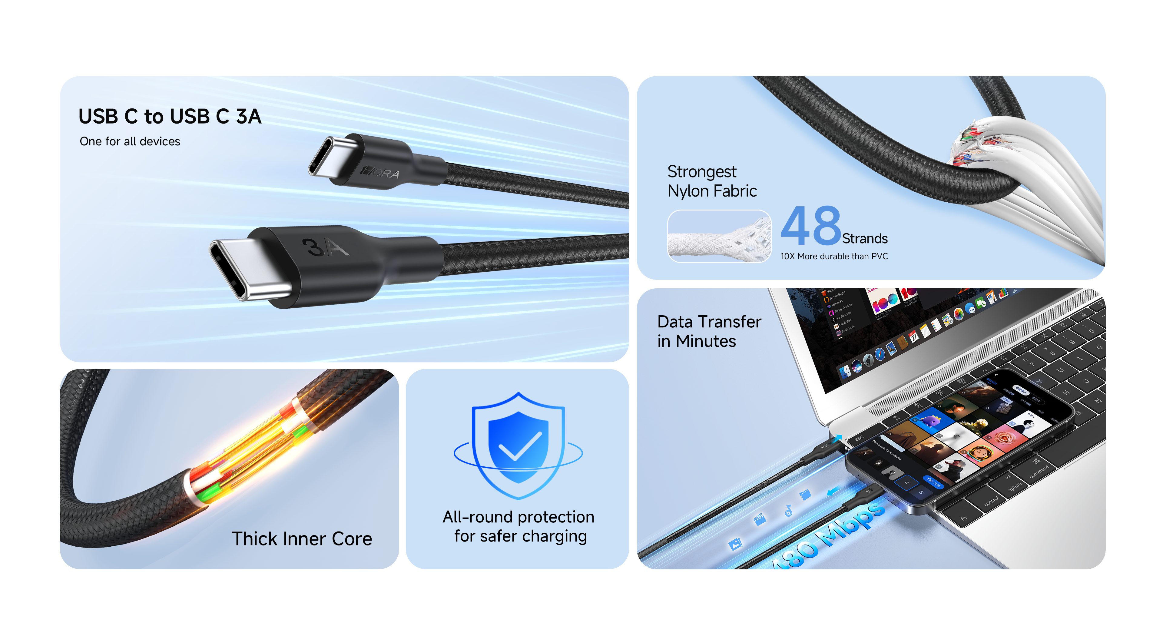 Este cable USB Tipo-C de 1 metro ofrece una carga rápida de 3 A y una transferencia de datos eficiente, lo que permite sincronizar fotos, vídeos y archivos de forma rápida y segura entre tus dispositivos USB Tipo-C. Con conectores reversibles y una construcción resistente, es perfecto para el hogar, la oficina o viajes