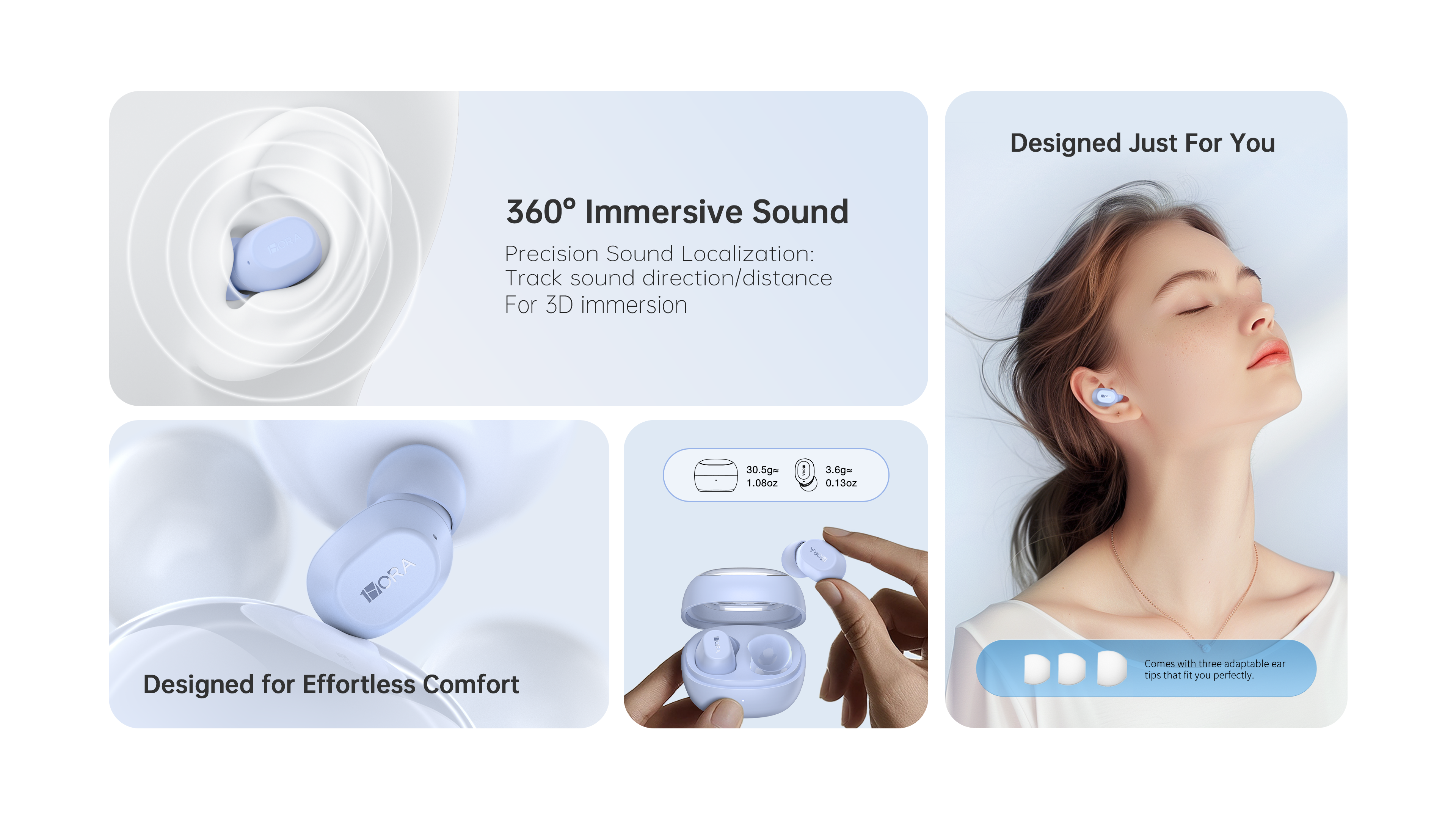 Wireless earbuds deliver 6H playtime (19H with 300mAh case) via Bluetooth 5.3. Features Type-C charging, in-ear design, and includes USB-C cable for direct phone charging