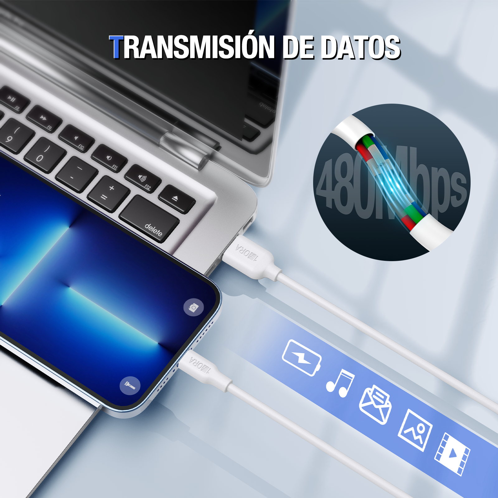 Compatible with iPhone and iPad, this durable cable withstands over 10,000 bends and supports fast charging with data transfer speeds up to 480Mbps—1GB in 40 seconds. Perfect for home, office, car, or outdoor use, it keeps your devices powered and cables tangle-free anytime, anywhere.