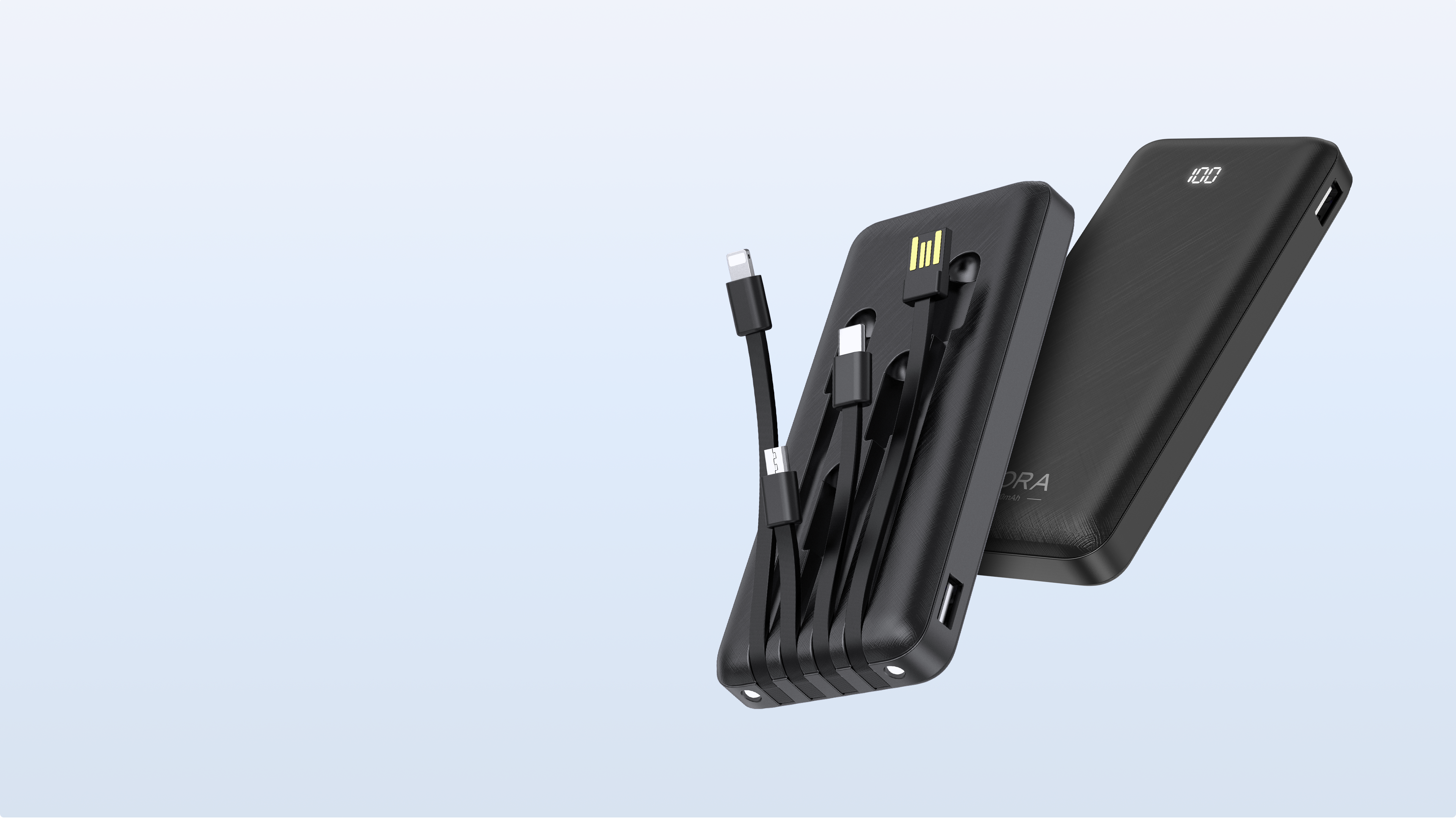 GAR148 10,000mAh Power Bank with Built-in Cables & Dual Flashlights