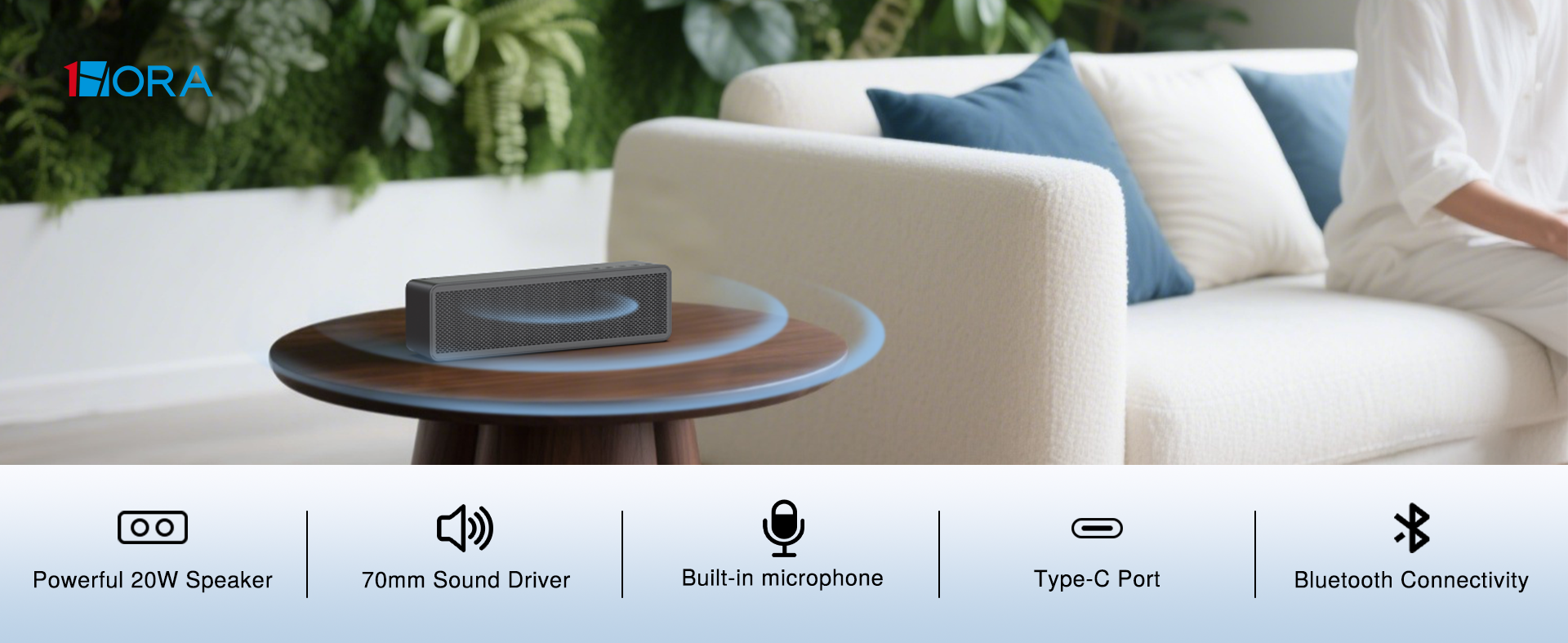 Ultra-compact 20W Bluetooth speaker with punchy bass, 4H playtime, and easy carry handle. Connects instantly to phones/tablets. Perfect for travel, picnics, and small gatherings