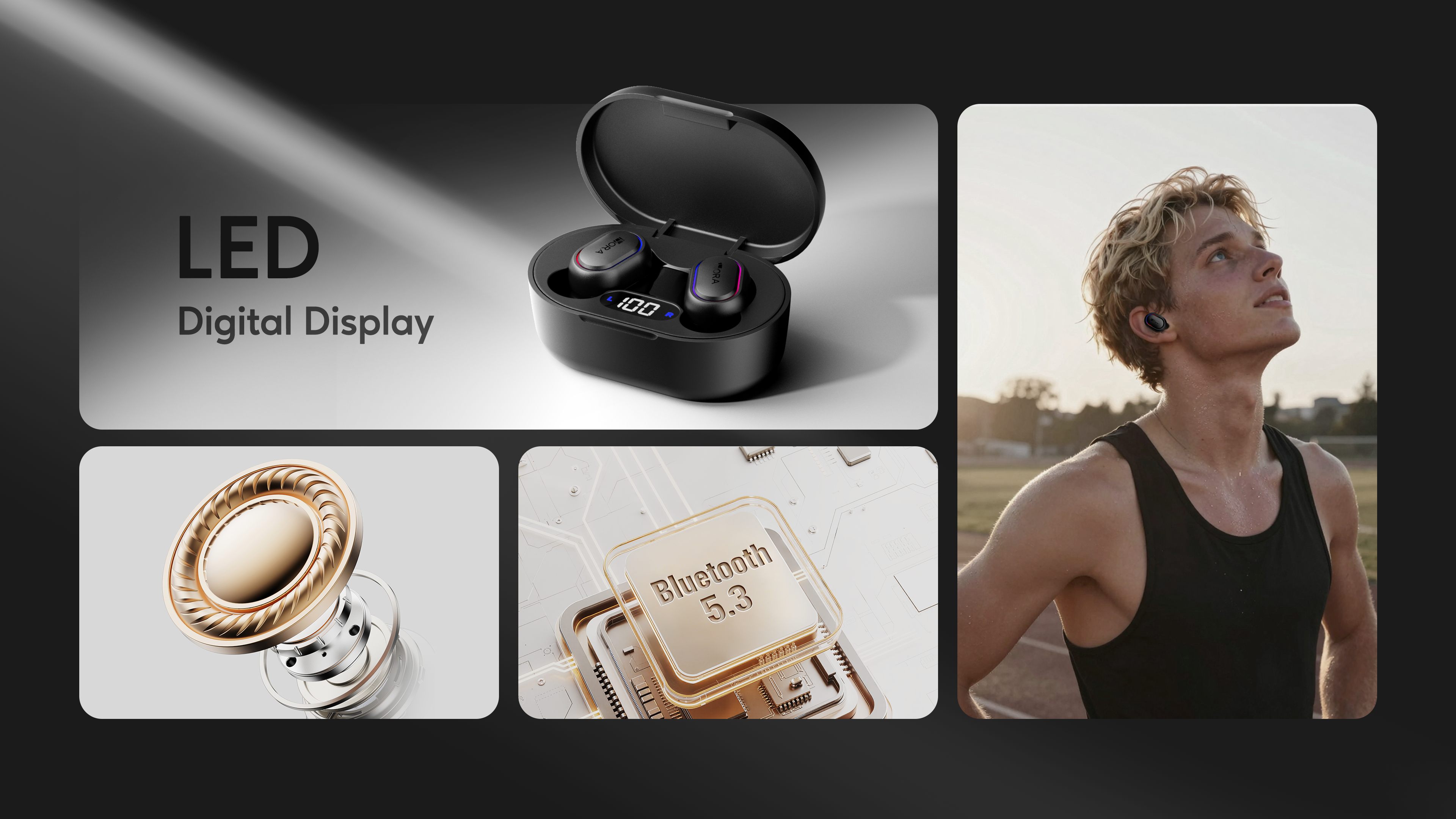 Lightweight wireless earbuds with Bluetooth 5.0, 25H total playtime and comfortable fit. Touch controls for calls & music. Perfect for daily use with iPhone/Android