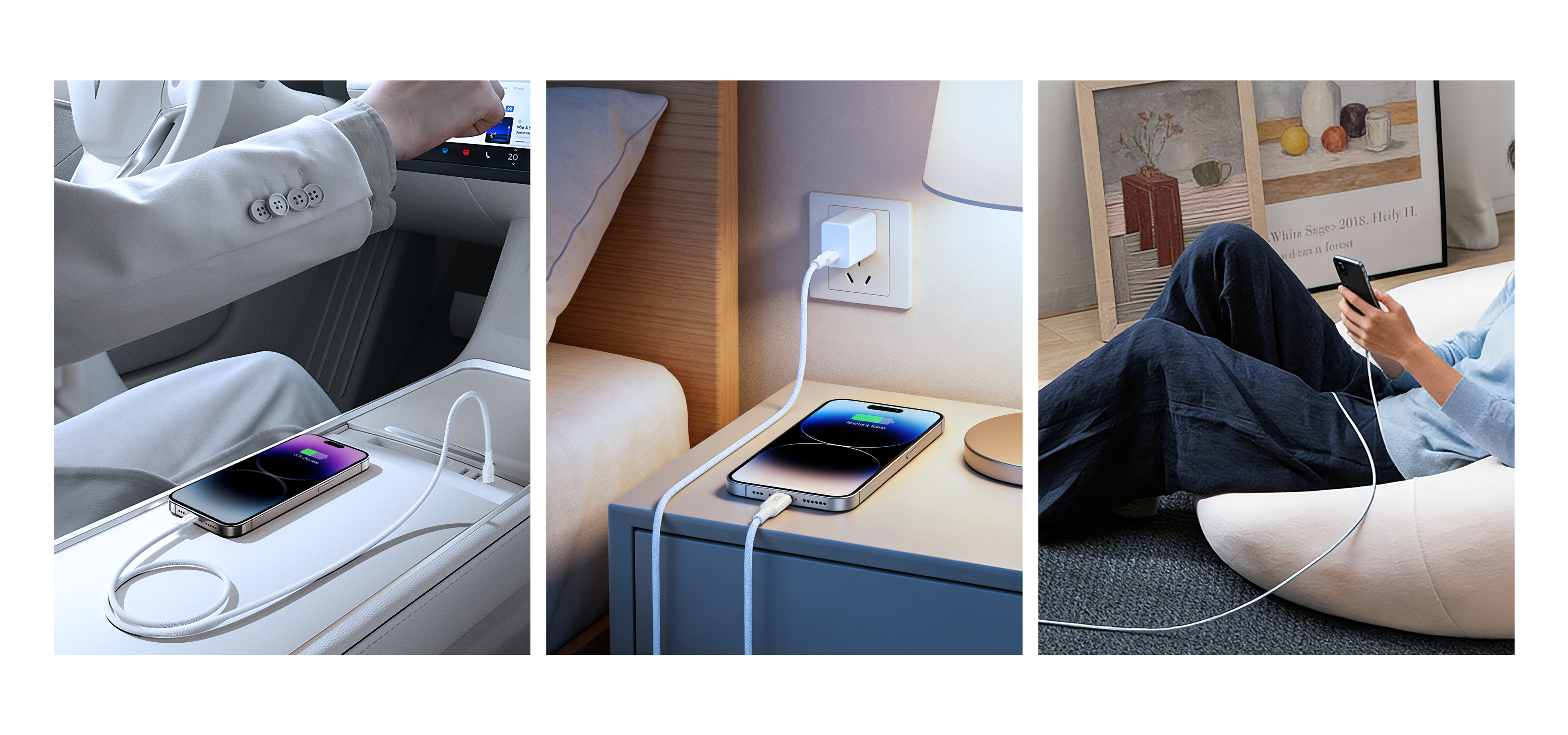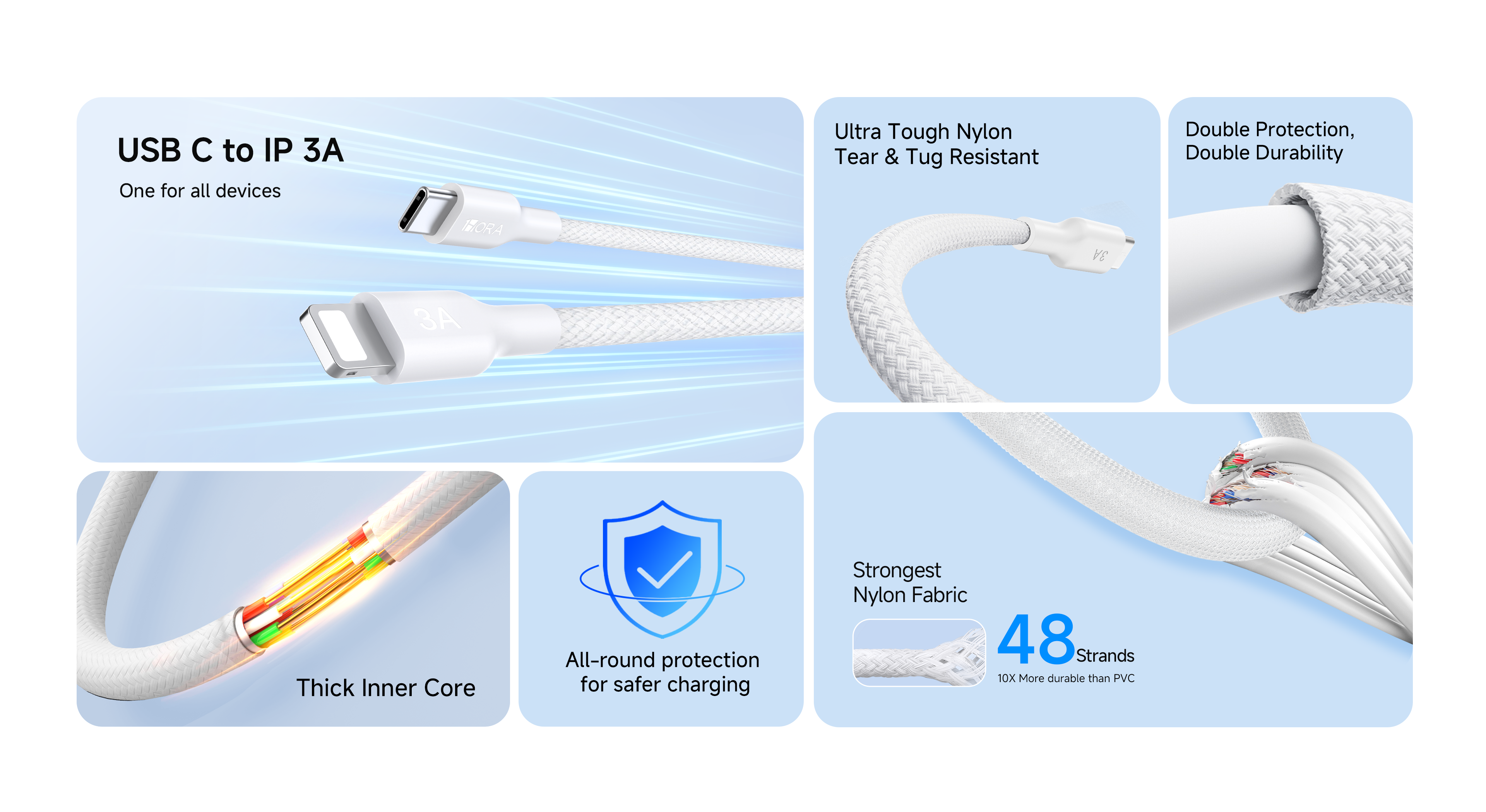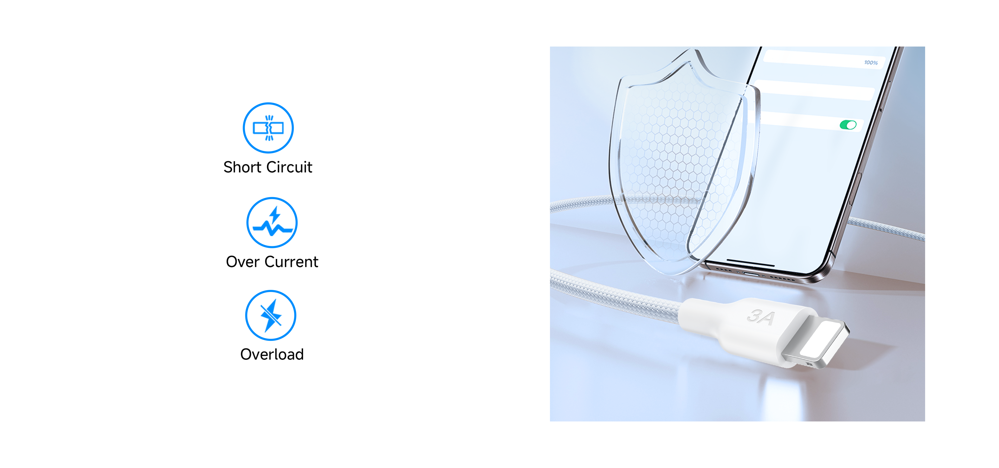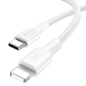 This Lightning charging cable delivers fast and safe 3A charging for iPhone and other Lightning-compatible devices. Built with a durable PET braided exterior and sturdy aluminum connectors, it resists heat, abrasion, and daily wear. An integrated chip ensures safe, stable power delivery.
