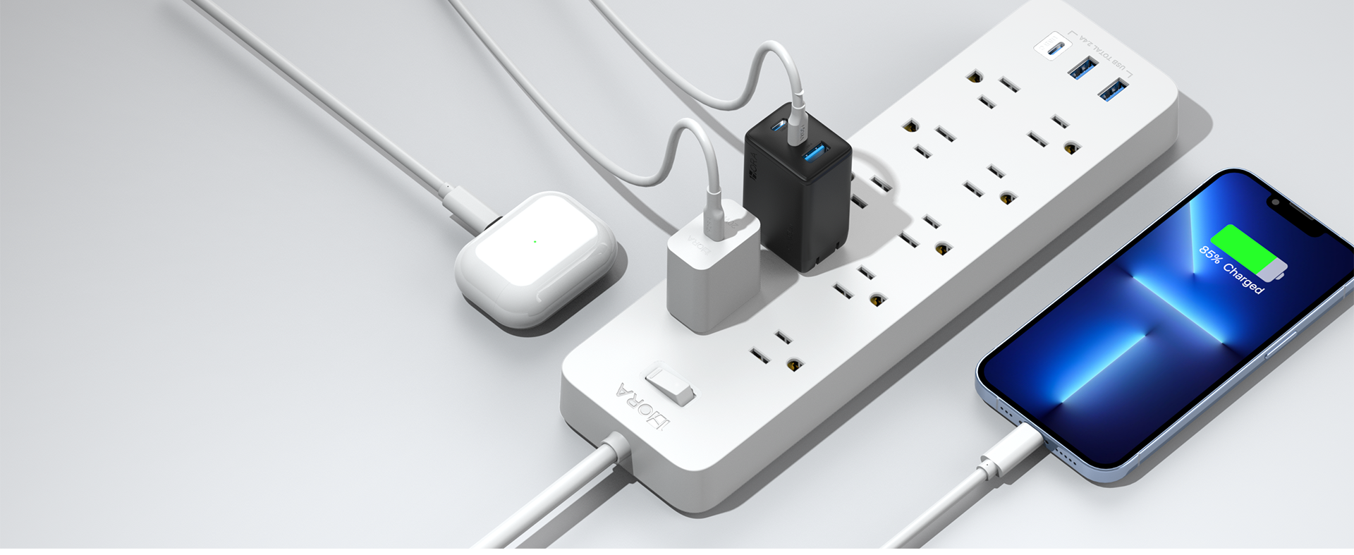 Ổ cắm điện nhỏ gọn này có 10 ổ cắm AC, 2 cổng USB-A và 1 cổng USB-C — hoàn hảo để sạc cùng lúc 13 thiết bị. Với cáp dài 1,5m, thiết kế treo tường và chức năng chống sét lan truyền tích hợp, sản phẩm lý tưởng cho gia đình hoặc văn phòng. Luôn có nguồn điện, gọn gàng và an toàn.